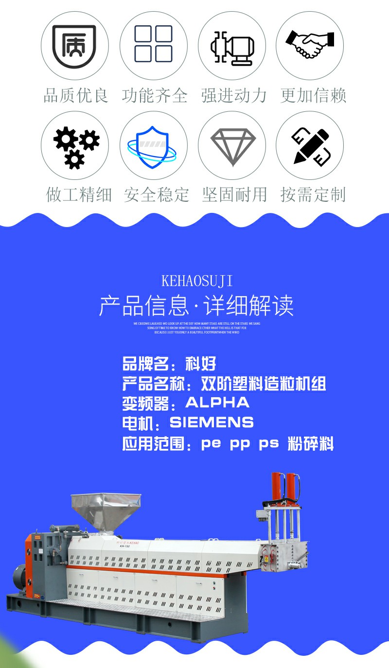 塑料造粒機(jī)生產(chǎn)線,科好塑機(jī)是一家專業(yè)生產(chǎn)塑料造粒機(jī)的廠家,歡迎了解更多關(guān)于造粒機(jī)的注意事項(xiàng)和操作方法